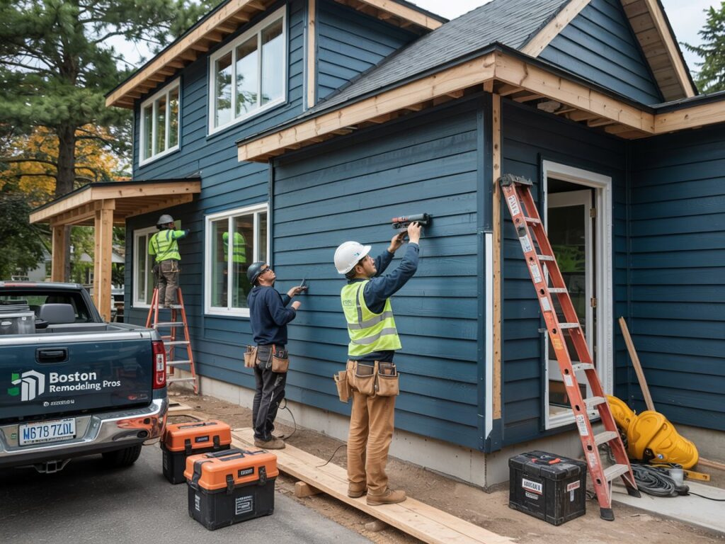 Fiber cement siding (e.g., James Hardie) performs best in Boston’s freeze-thaw cycles, wind, and moisture. It resists rot, pests, and warping.